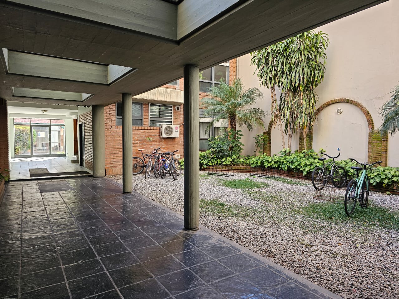 Edificio con parrilla y quincho cerrado. Espacio para guardar bicicletas en planta baja