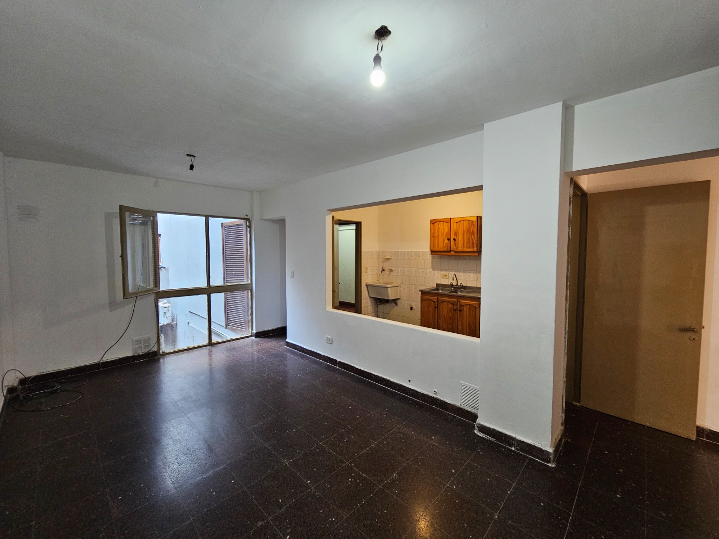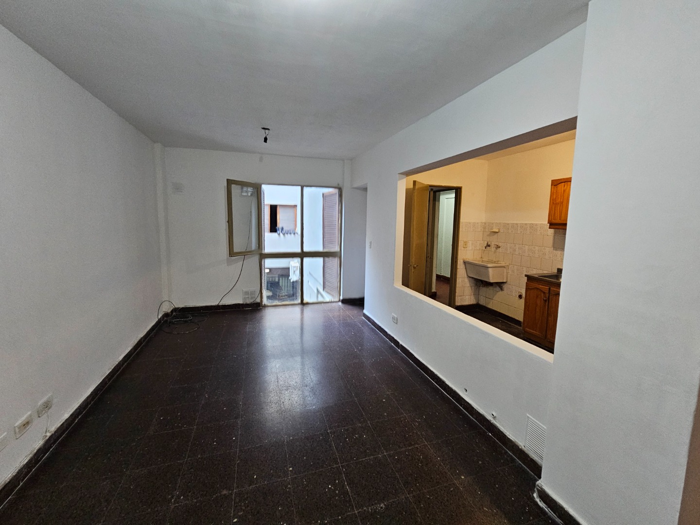 Living comedor, cocina semi-integrada, dos dormitorios con placares, baño, balcón al contrafrente.