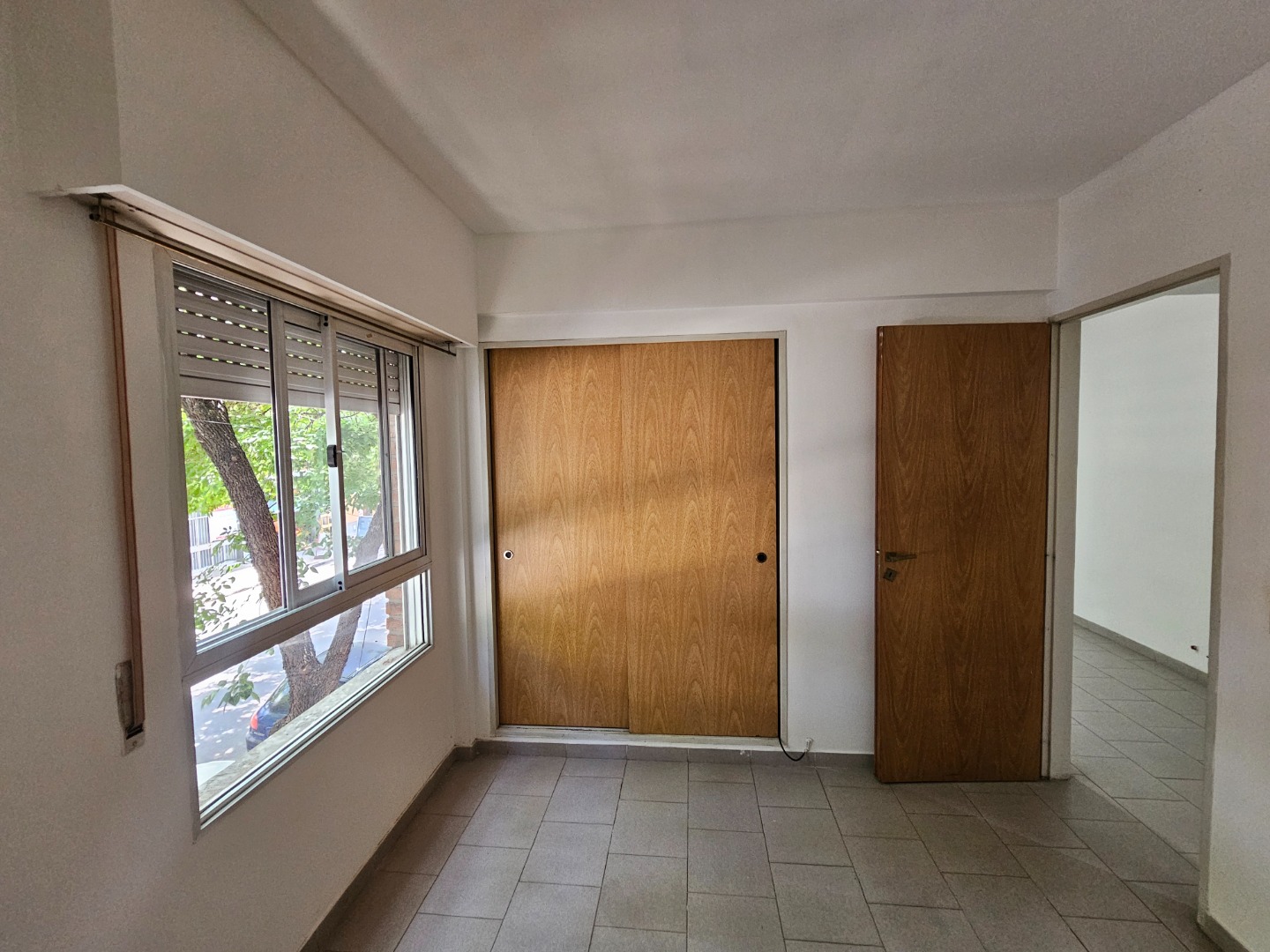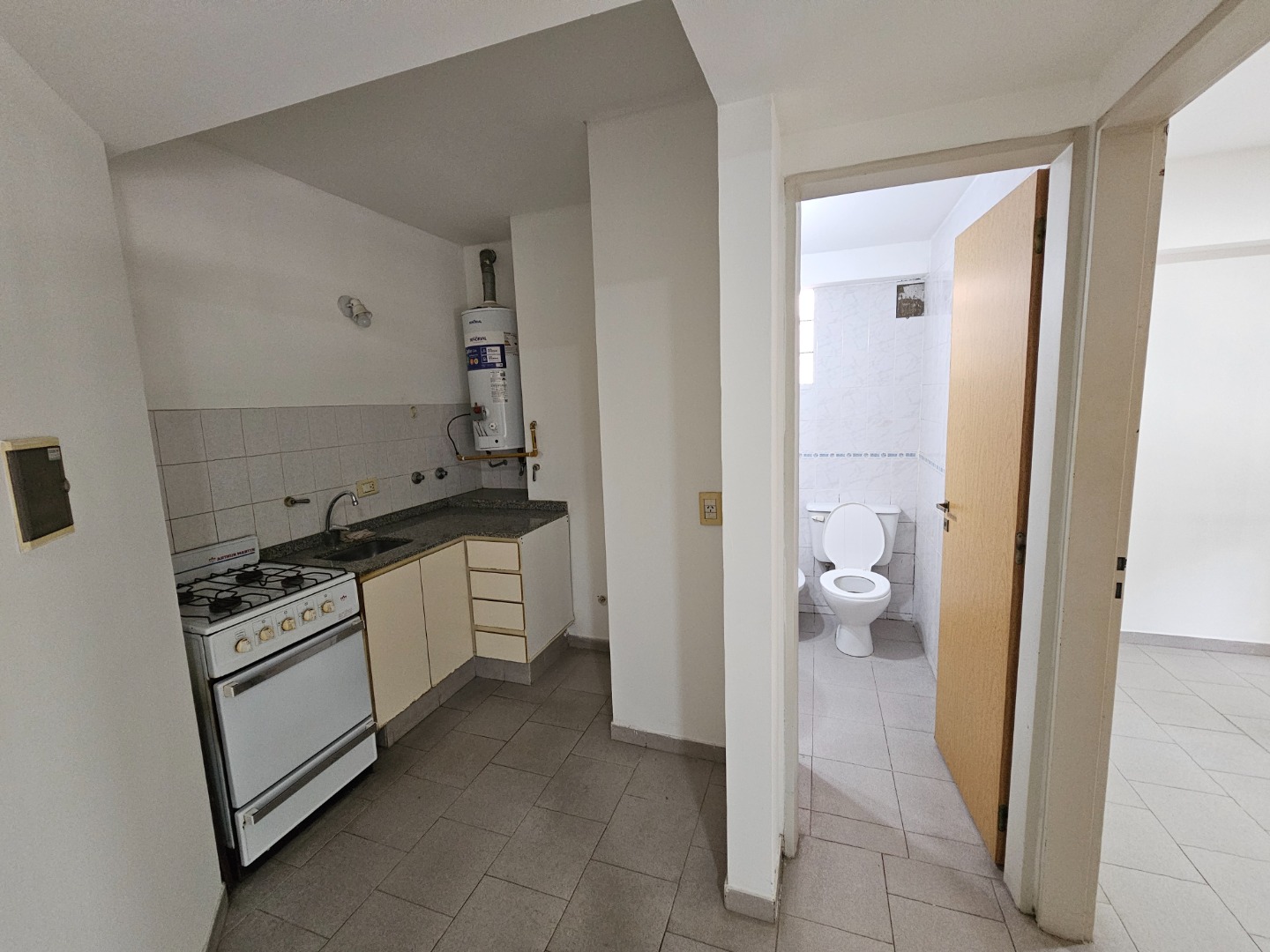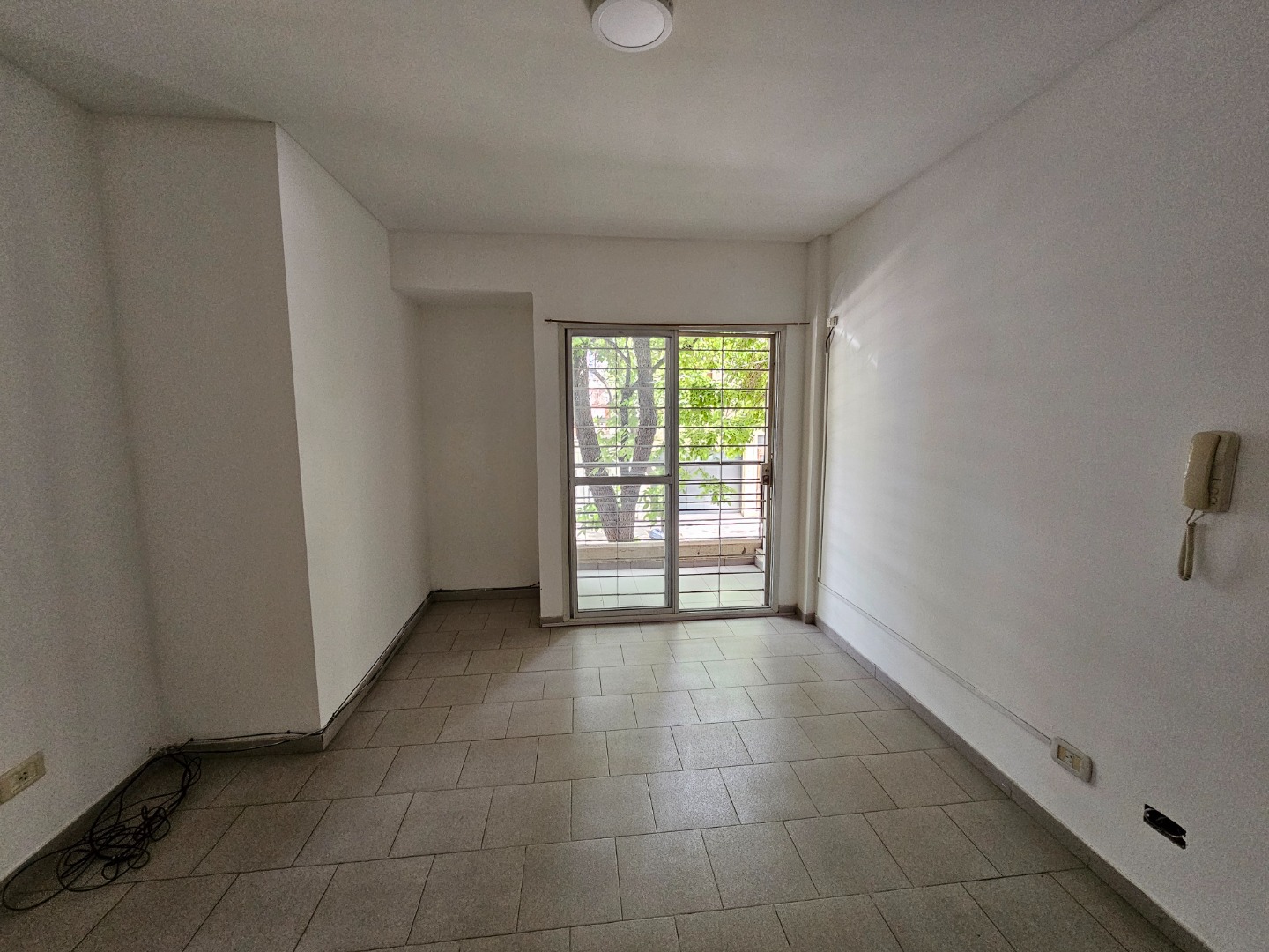 Departamento de un dormitorio, estar comedor con cocina integrada, dormitorio con placard, baño, balcón externo con rejas.