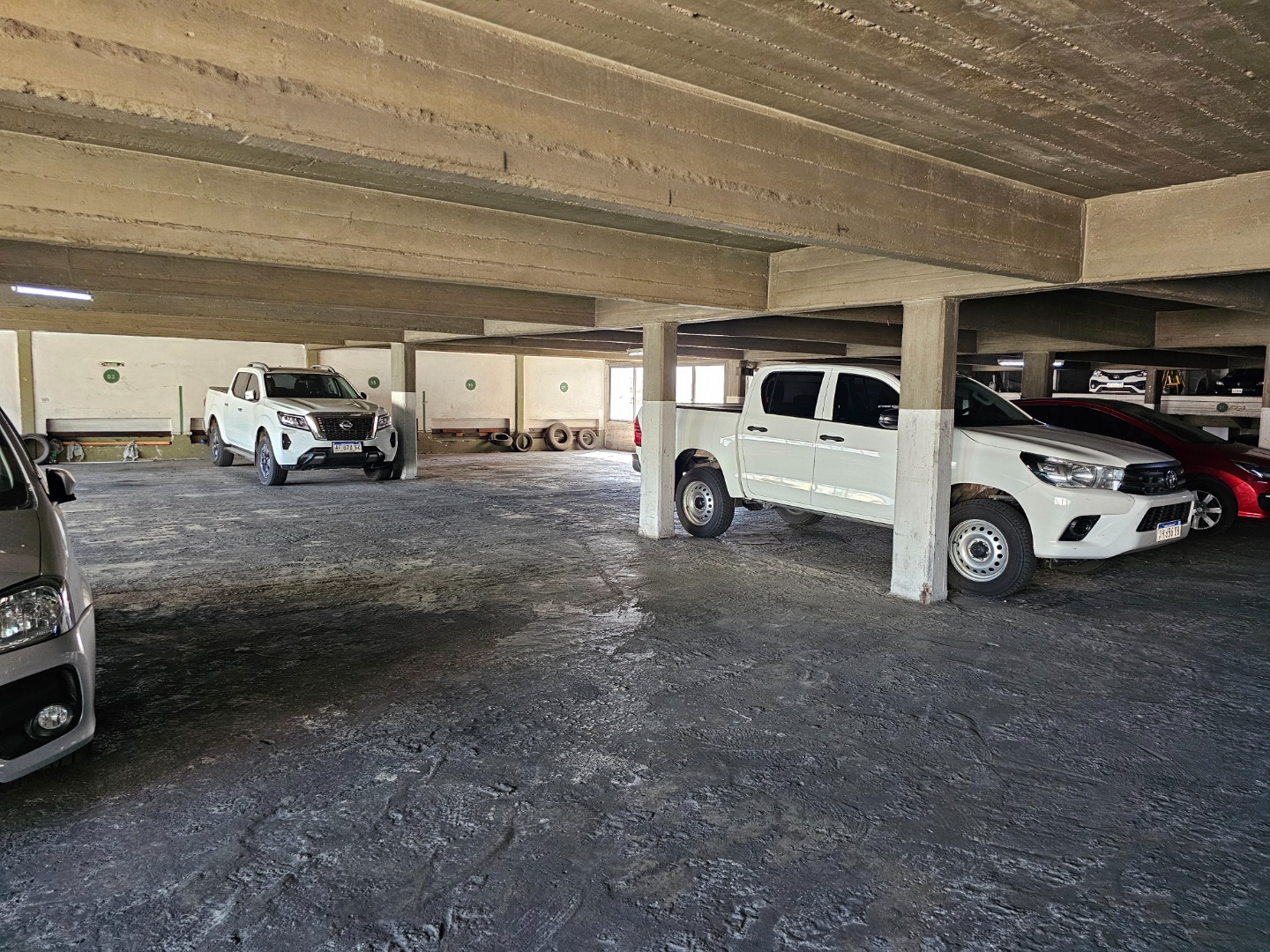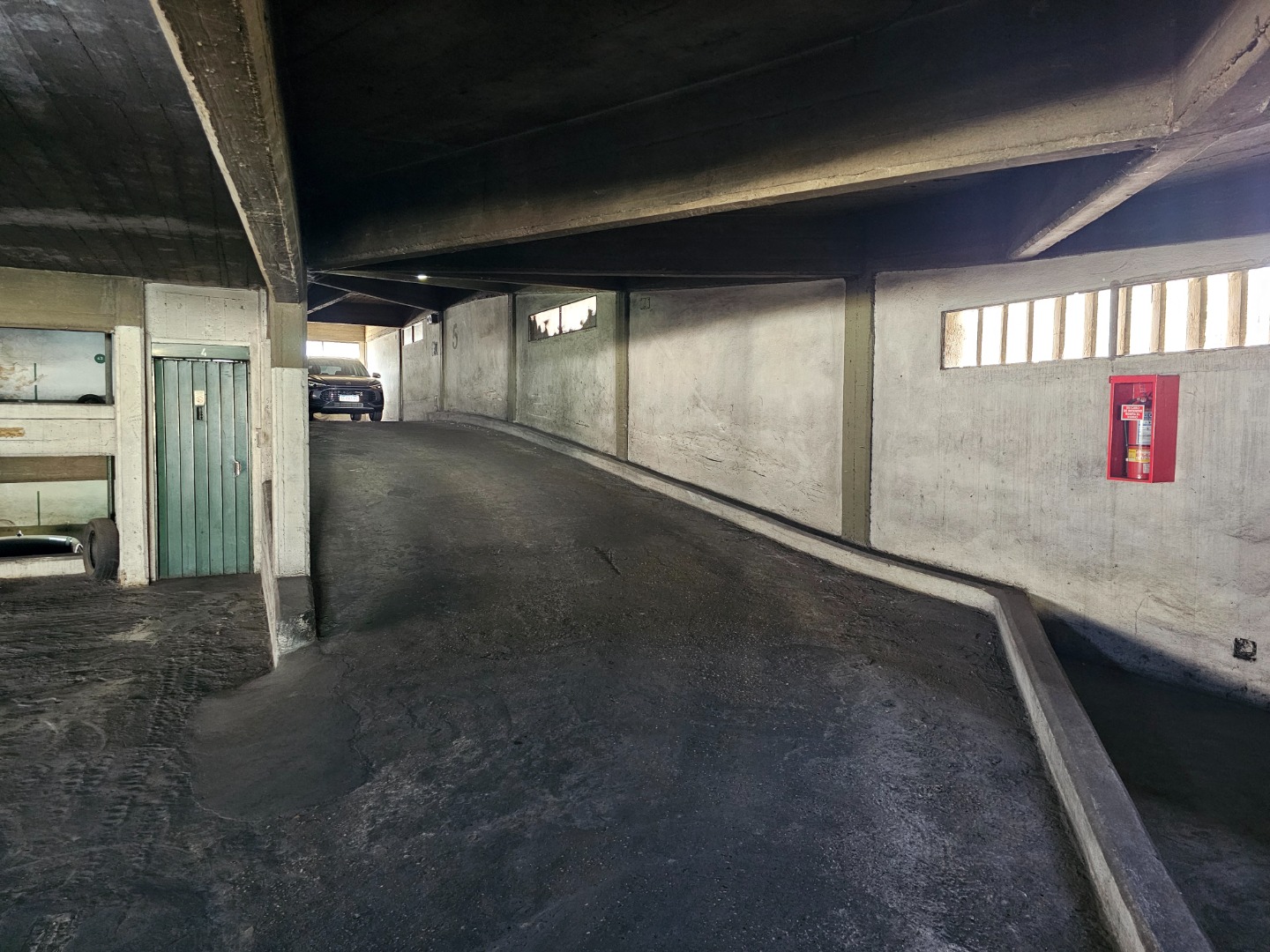 Amplia cochera con rampa de hormigón. Techada.