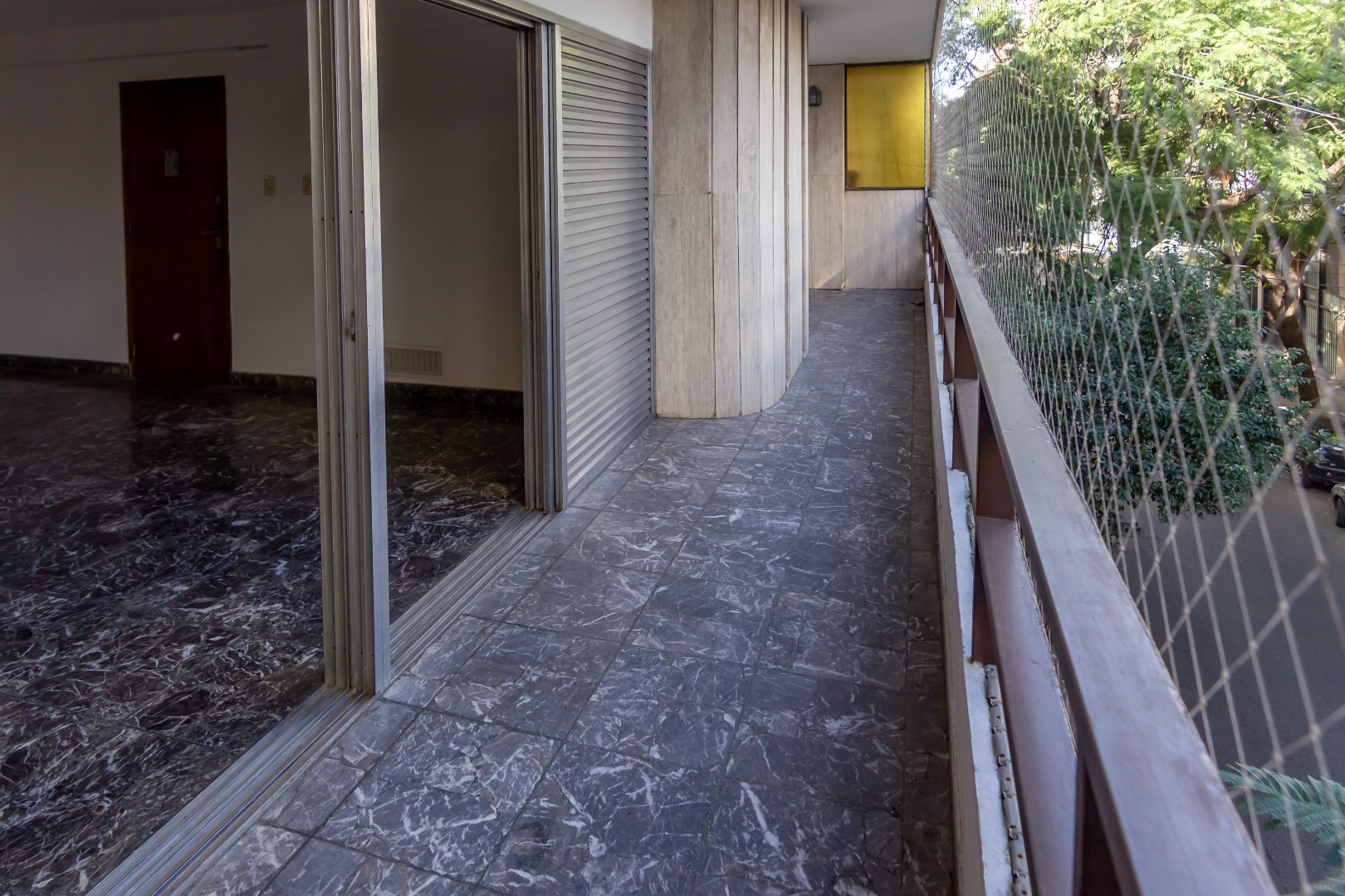 Piso exclusivo. Se compone de un amplísimo living comedor con piso de mármol, ventanal de cuatro puertas con salida a un balcón corrido al frente de 9,14 m2, cocina comedor totalmente equipada, jardín de invierno de 8,01 m2, amplísimo lavadero independiente, tres dormitorios con placares, baño completo. muy iluminado, ventilación cruzada.