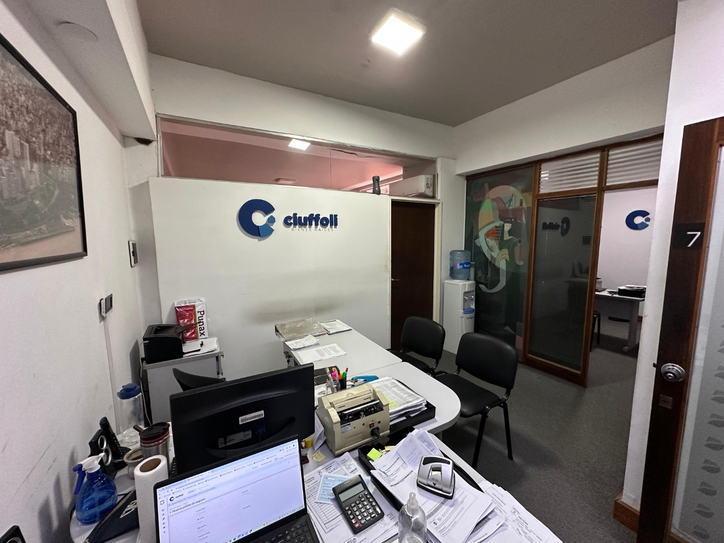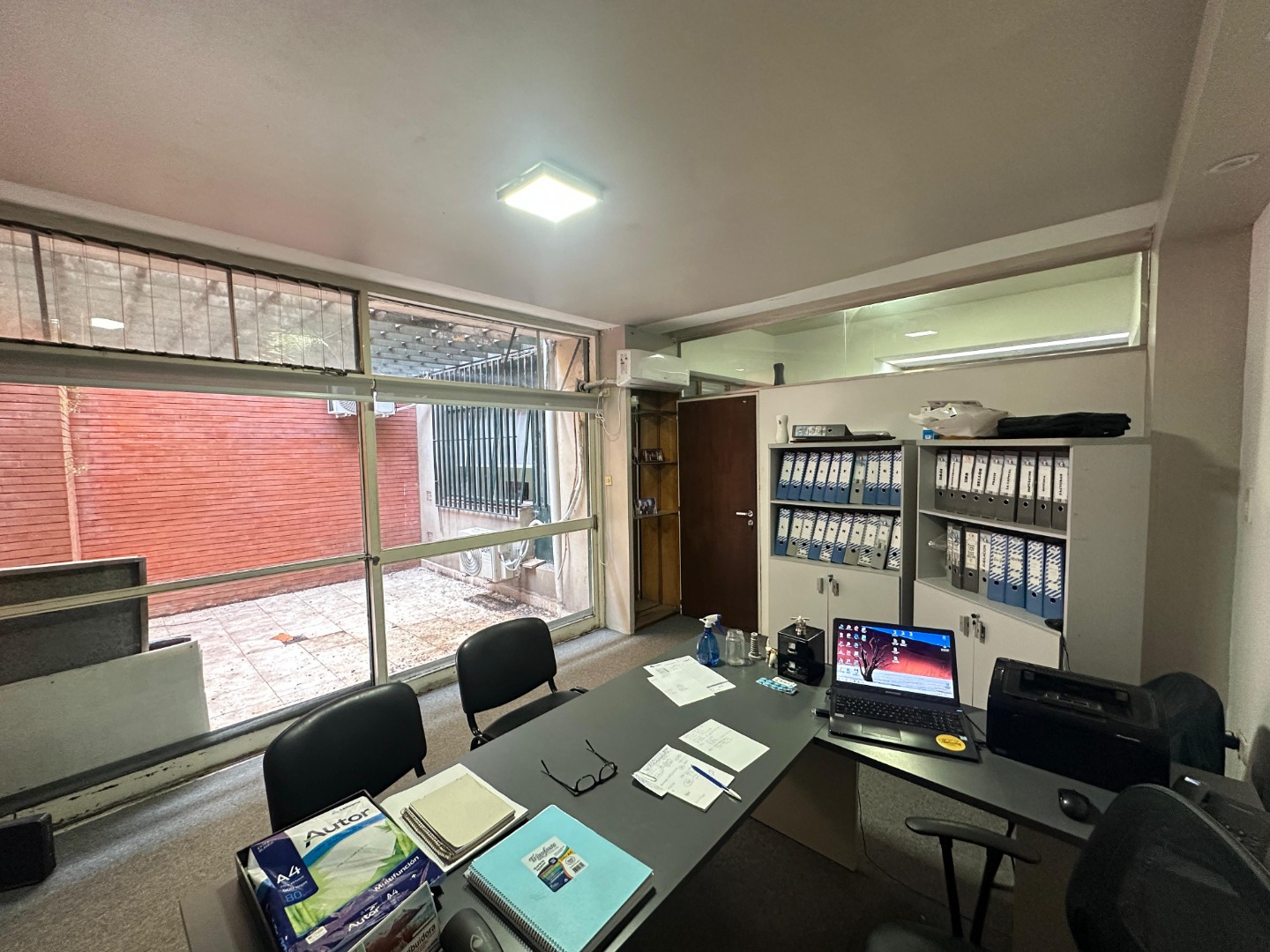 La oficina cuenta con una recepción, tres privados y patio.
